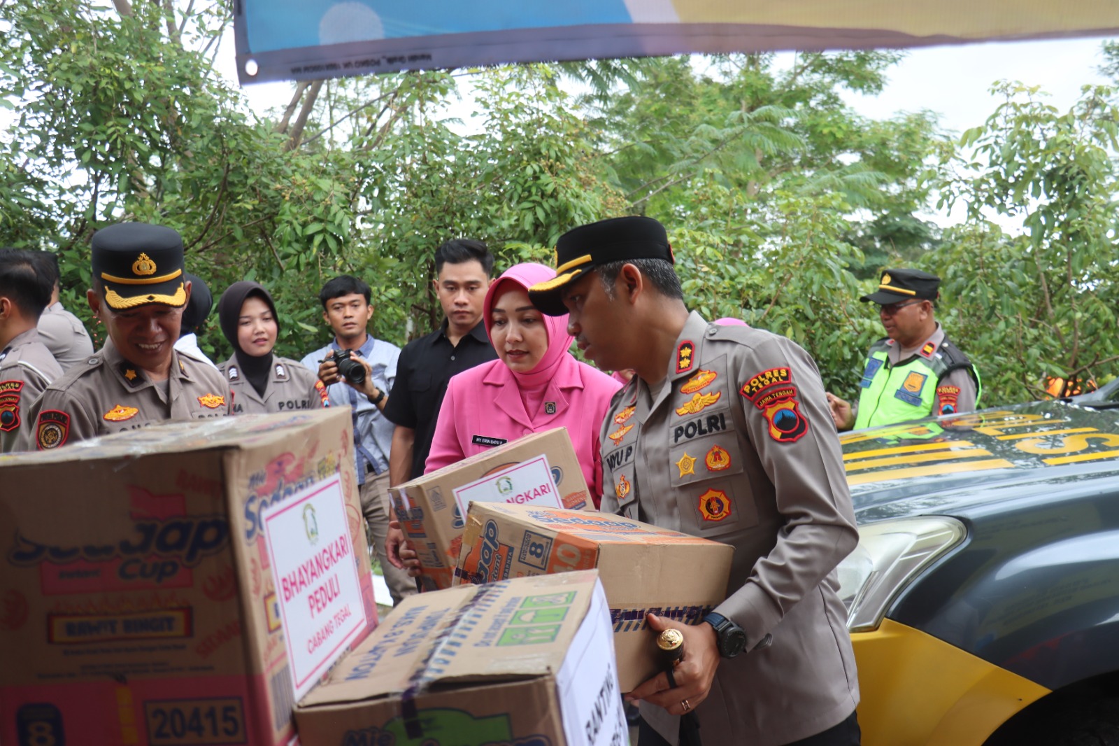 Bantuan tersebut diserahkan langsung oleh Kapolres Tegal AKBP Bayu Prasatyo, S.H., S.I.K., M.H. didampingi Ibu Ketua Cabang Bhayangkari Polres Tegal. Kehadiran mereka tidak hanya membawa bantuan, tetapi juga membawa harapan, semangat, serta rasa kebersamaan bagi warga yang tengah berjuang bangkit dari musibah.